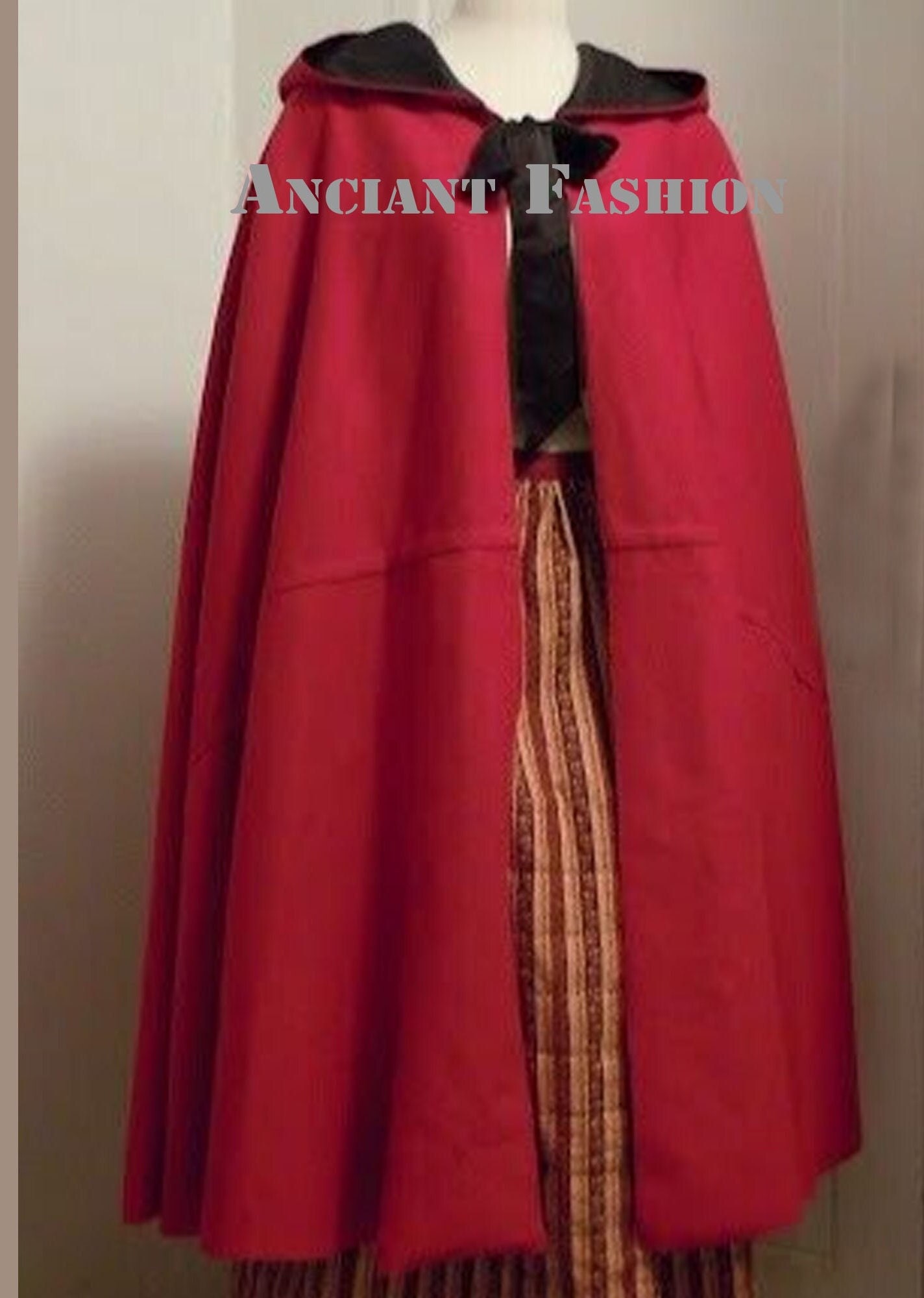 18th Century 1700s Cloak Cape With Hood Train Ruffle Trim Etsy
